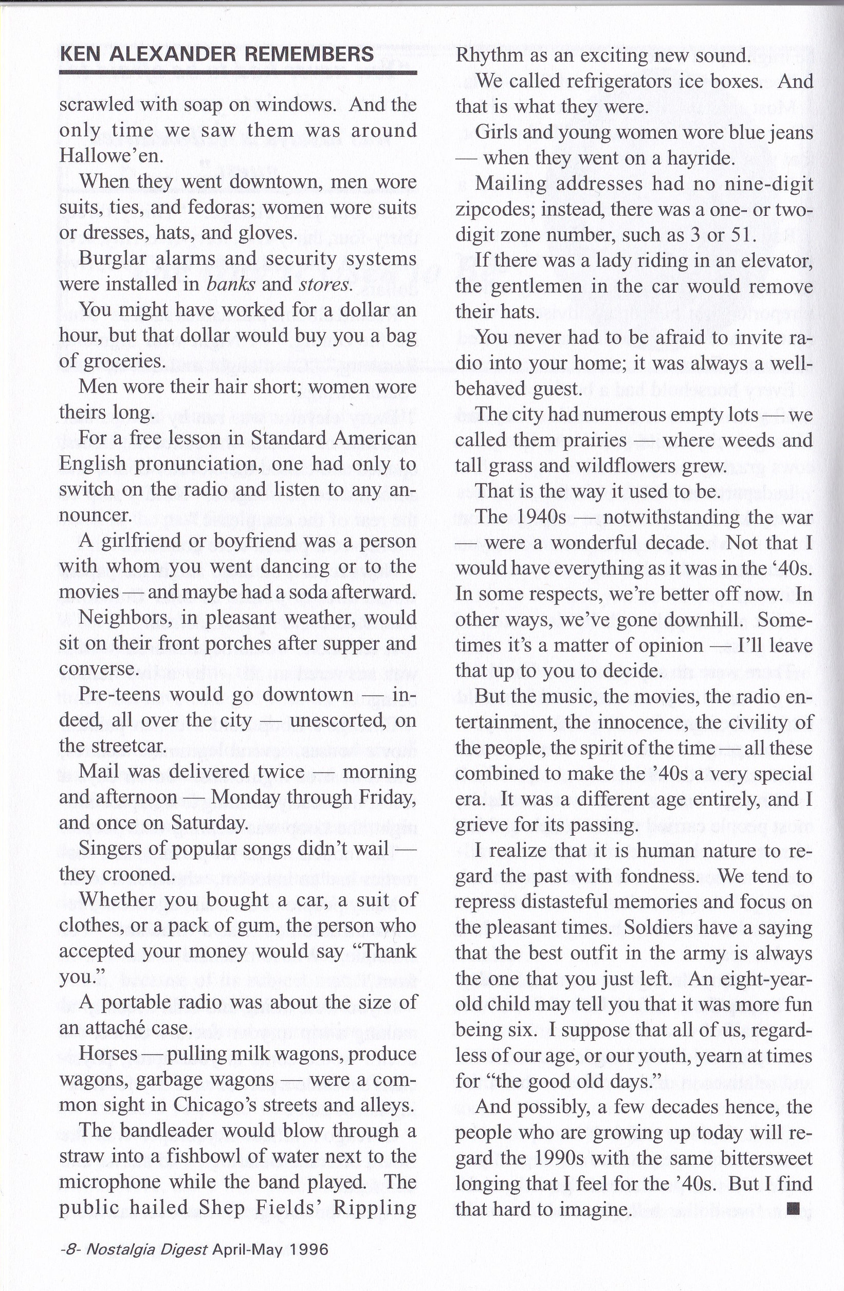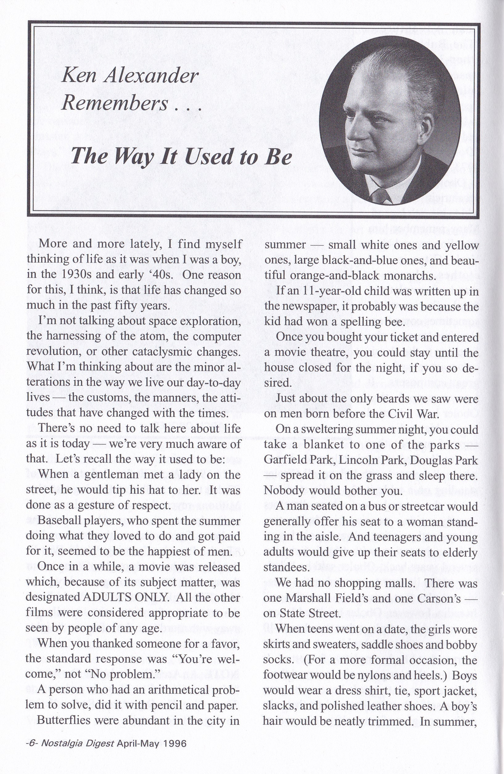 The Way It Use To Be – April-May 1996